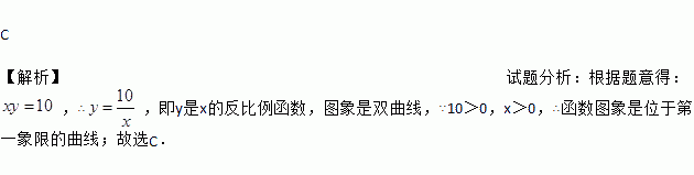 已知矩形的面积为10,长和宽分别为x和y,则y关于x的函数图象大致是( )