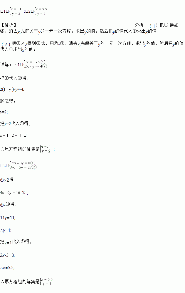 用适当方法解下列方程组.