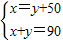 根据∠α比∠β的度数大50°,得方程x=y+50.