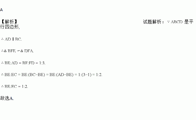 如图,F是平行四边形ABCD对角线BD上的点,BF:FD=1:3,则BE:EC=( )