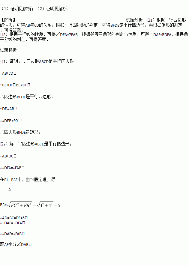 如图,在□ABCD中,过点D作DE⊥AB于点E,点F在CD上,CF=AE,连接BF,AF.