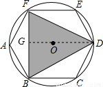 解:阴影部分是一个正三角形,连接DO并延长,交BF于点G.