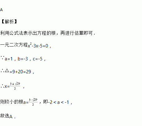 已知a是一元二次方程x2﹣3x﹣5=0的较小的根,则下面对a的估计正确的是( )