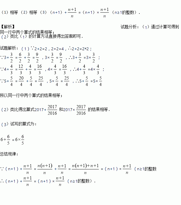 (3)请你试写出算式,试一试,再探索其规律,并用含自然数n的代数式表示这一规律。