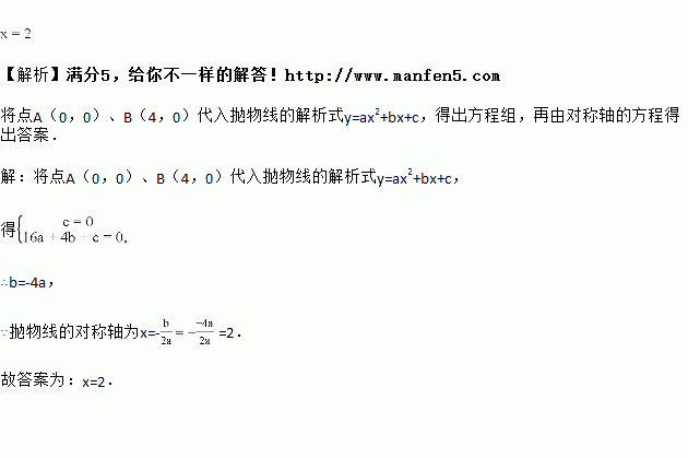 若抛物线与轴交于点、,则抛物线的对称轴为直线________.