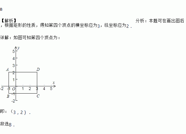 在平面直角坐标系中,一个矩形三个顶点的坐标分别为(-1,-1),(-1,2),(3,-1),则第四个顶点的坐标为( )