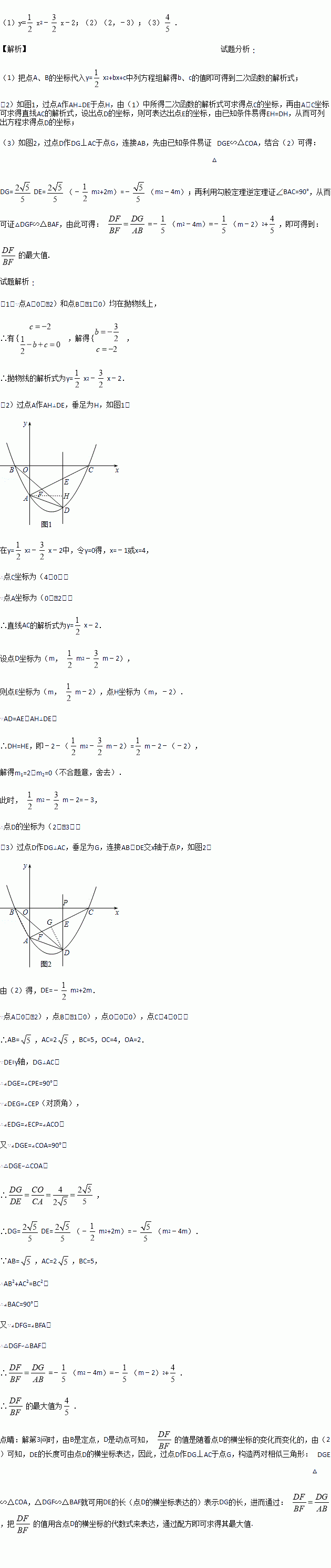 (2)过点D作y轴的平行线交AC于点E,若AD=AE,求点D的坐标;