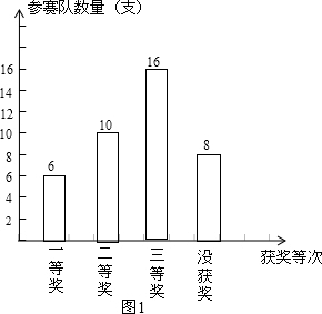 在我市举行的“祖国好,家乡美”唱红歌比赛活动中,共有40支参赛队.市教育局对本次活动的获奖情况进行了统计,并根据收集的数据绘制了图1、图2两幅不完整的统计图,请你根据图中提供的信息解答下面的问题: