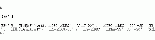 如图,将矩形纸片ABCD沿BD折叠,得到△BC′D,C′D与AB交于点E.若∠1=35°,则∠2的度数为( )