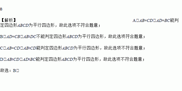 在下列给出的条件中,不能判定四边形ABCD一定是平行四边形的是( )