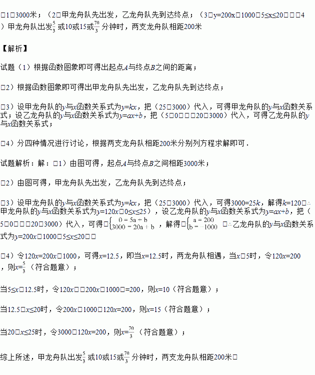 (4)甲龙舟队出发多长时间时两支龙舟队相距200米?