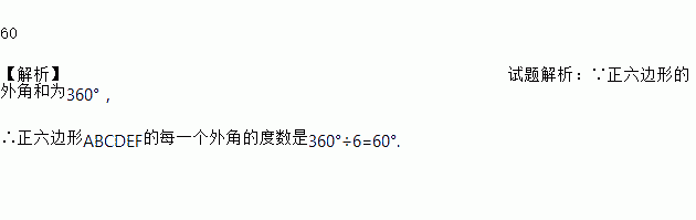 正六边形ABCDEF的每一个外角的度数是__________度.