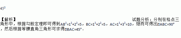如图,每个小正方形的边长为1,A、B、C是小正方形的顶点,则∠ABC的度数为__________.