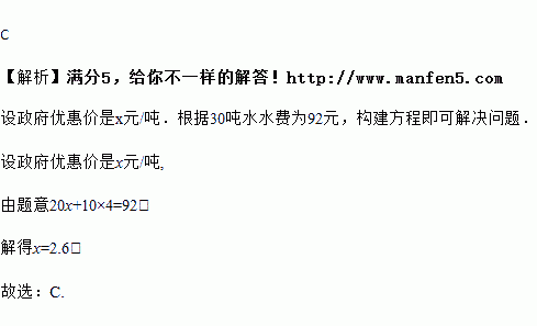 吨),按政府优惠价收费;若每月用水量超过![]()
