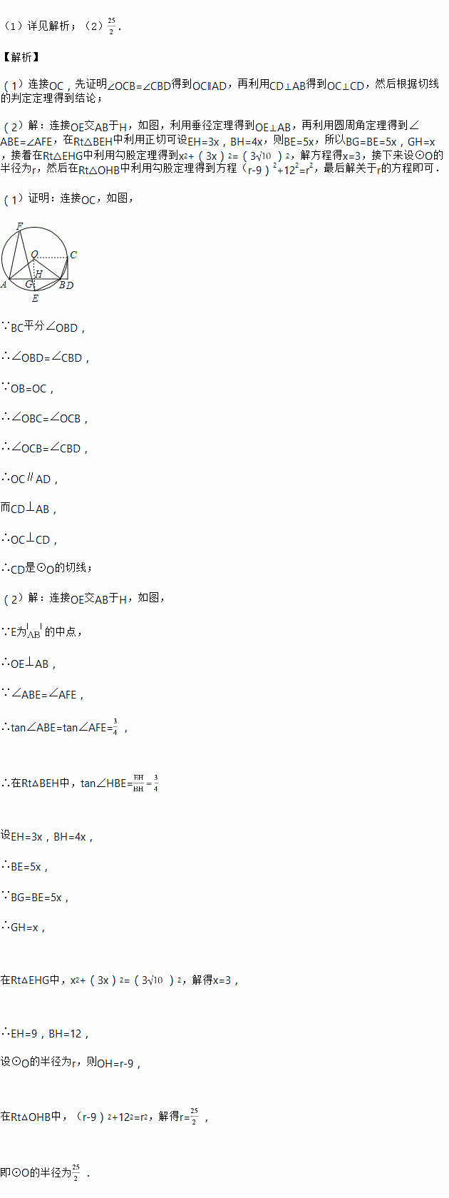 的中点,F为⊙O上一点,EF交AB于G,若tan∠AFE=