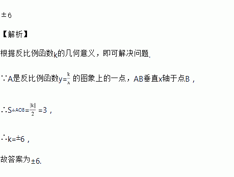 已知A是反比例函数的图象上的一点,AB垂直x轴于点B,O是坐标原点且的面积是3,则k的值是______.