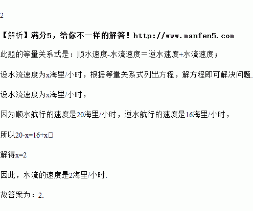 若一艘轮船顺水航行的速度是20 n mile/h,逆水航行的速度是16 n mile/h,则水流速度是_________ n mile/h.