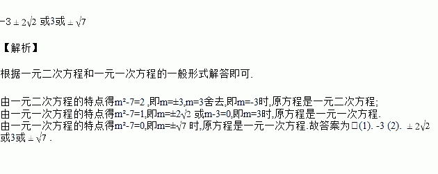 当m=_________时,关于x的方程是一元二次方程;当m=_________时,此方程是一元一次方程.