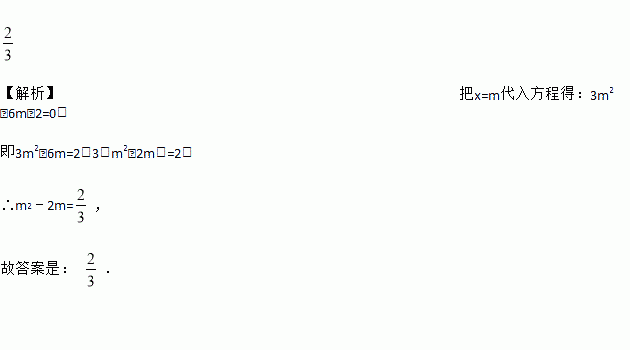 已知m是方程3x2﹣6x﹣2=0的一根,则m2﹣2m=_____.