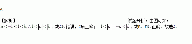 A. |a|<1<|b| B. 1<﹣a<b C. 1<|a|<b D. ﹣b<a<﹣1
