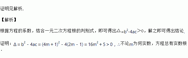 求证:不论m为任何实数,关于x的一元二次方程x2+(4m+1)x+2m-1=0总有实数根.