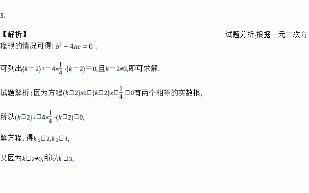 已知关于x的方程(k-2)x2-(k-2)x+=0有两个相等的实数根.求k的值.