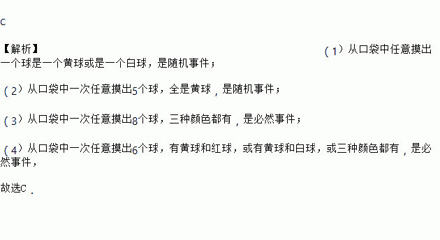 (4)从口袋中一次任意摸出6个球,有黄球和红球,或有黄球和白球,或三种颜色都有.