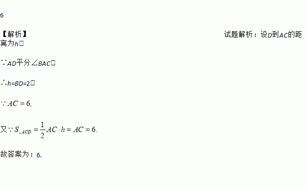 如图,在直角三角形ABC中,∠B=90°,AD平分∠BAC,交边BC于点D,如果BD=2,AC=6,那么△ADC的面积等于________.