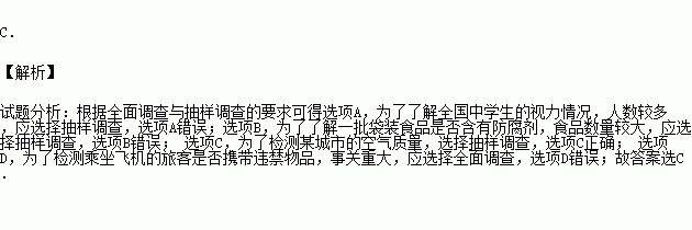 D.为了检测乘坐飞机的旅客是否携带违禁物品,选择抽样调查