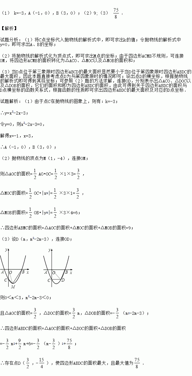 (3)在x轴下方的抛物线上是否存在一点D,使四边形ABDC的面积最大?若存在,请求出点D的坐标;若不存在,请说明理由.