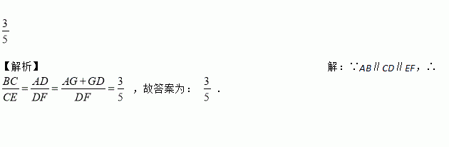 如图,AB∥CD∥EF,AF与BE相交于点G,且AG=2,GD=1,DF=5,那么的值等于________.