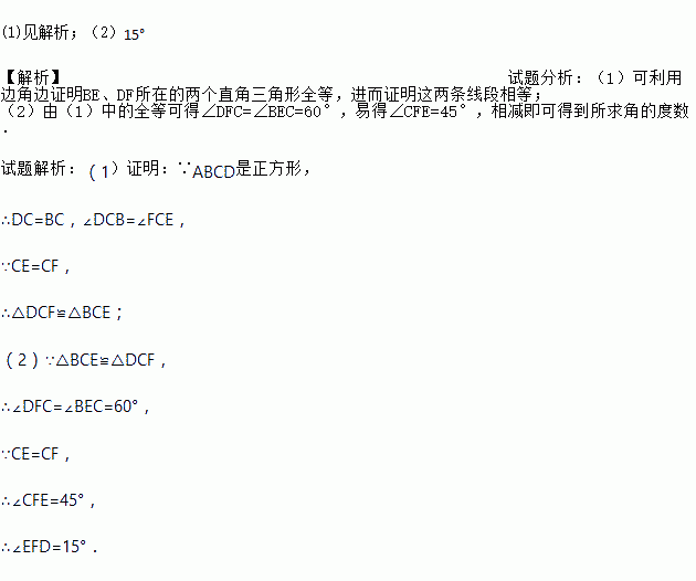 如图,正方形ABCD中,E为CD边上一点,F为BC延长线上一点,CE=CF.