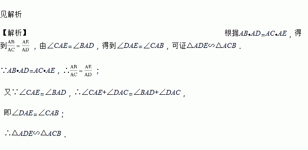 如图,在△ABC和△AED中,AB·AD=AC·AE,∠BAD=∠CAE.求证:△ABC∽△AED.