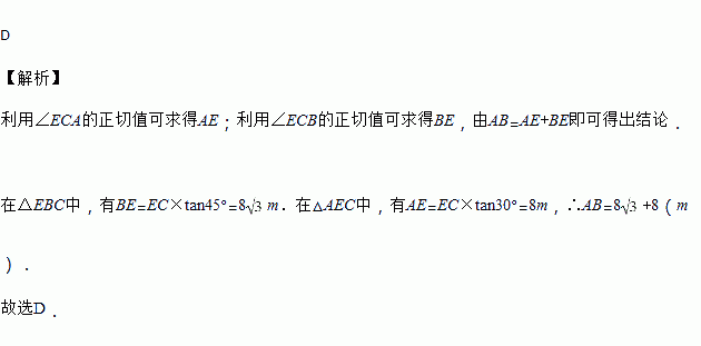 m,测得旗杆的顶部A的仰角∠ECA=30°,旗杆底部B的俯角∠ECB=45°,则旗杆AB的髙度是( )m.
