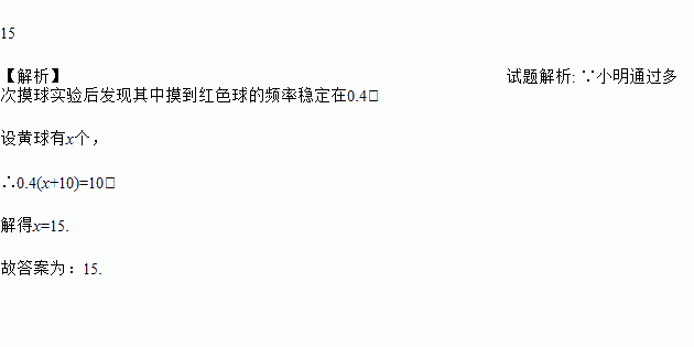 一个口袋中装有10个红球和若干个黄球在不允许将球倒出来数的前提下,为估计口袋中黄球的个数,小明采用了如下的方法:每次先从口袋中摸出10个球,求出其中红球数与10的比值,再把球放回口袋中摇匀![]()