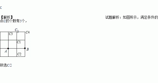 如图,在3×3网格中,已知点A,B是网格顶点(也称格点),若点C也是图中的格点,且使得△ABC为等腰三角形,则满足条件的点C的个数为( )