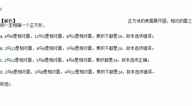 奇奇和丽丽发现了“24点”新玩法游戏,要制作一个正方体骰子,六个面上写着六个数,而且相对的两个面的乘积都等于24,则以下的展开图中,符合要求的是( )