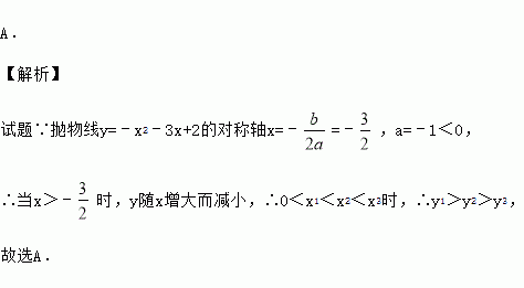 若二次函数y=﹣x2﹣3x+2的自变量x分别取x1、x2、x3,且x1、x2、x3,且0<x1<x2<x3,则对应的函数值y1、y2、y3的大小关系正确的是( )