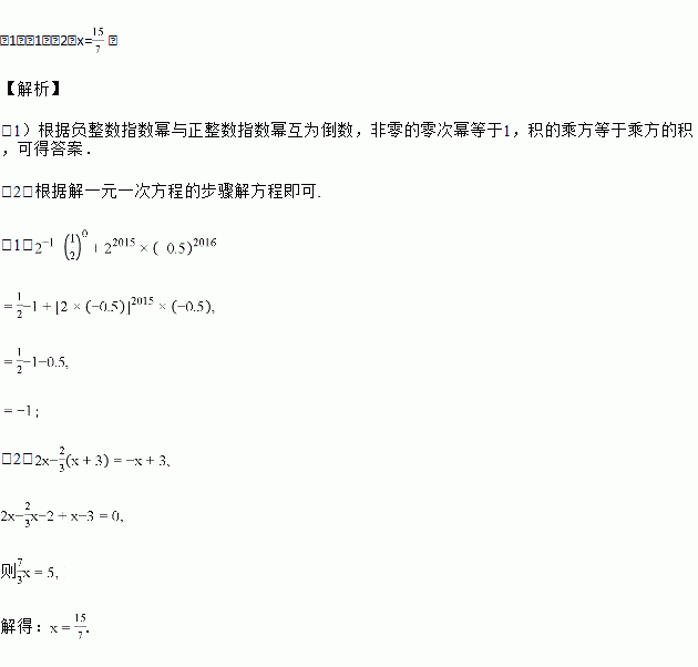 (1)计算:2﹣1﹣()0+22015×(﹣0.5)2016