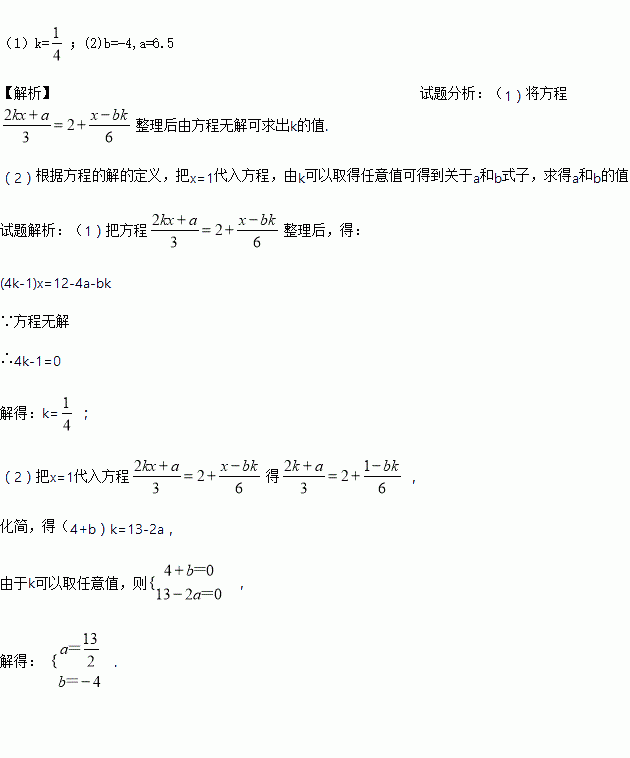 (2)如果该方程有解,且不论K为何值时,它的解总是1,试求a, b的值。