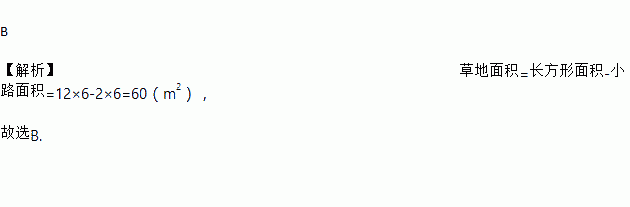如图,在一块长为12m,宽为6m的长方形草地上,有一条弯曲的柏油小路(小路任何地方的水平宽度都是2m),则空白部分表示的草地面积是 ( )