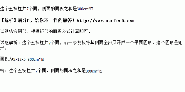 如图所示的五棱柱的底面边长都是,侧棱长,它有多少个面?它的所有侧面的面积之和是多少?