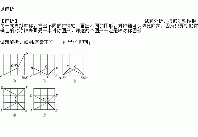 如图,在3×3的正方形网格中,格点△ABC和格点△DEF关于某条直线成轴对称,图①中已将△DEF画出,请你在图②,图③,图④中分别画出一个不同的、符合条件的△DEF.
