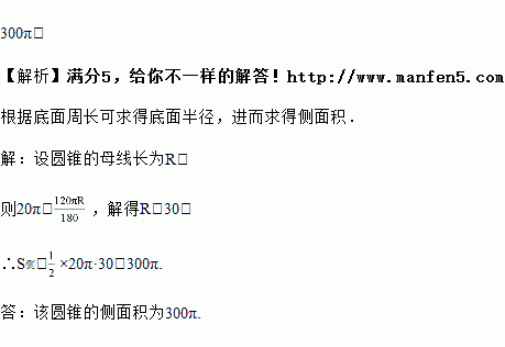 如果圆锥底面的周长是20π,侧面展开后所得扇形的圆心角为120°,求该圆锥的侧面积.