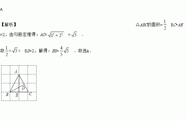 如图所示,△ABC的顶点A、B、C在边长为1的正方形网格的格点上,BD⊥AC于点D,则BD的长为( )