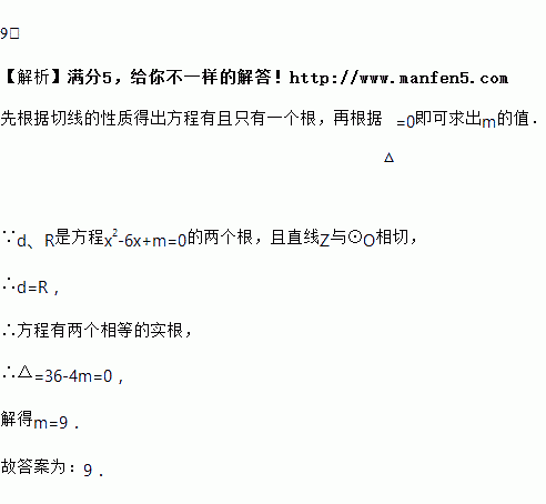 ⊙O的半径为R,圆心O到直线L的距离为d,R、d是方程x2-6x+m=0的两根,当直线L与⊙O相切时,m的值为____.