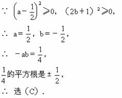 -a+4b+=0,那么-ab的平方根是[ ]