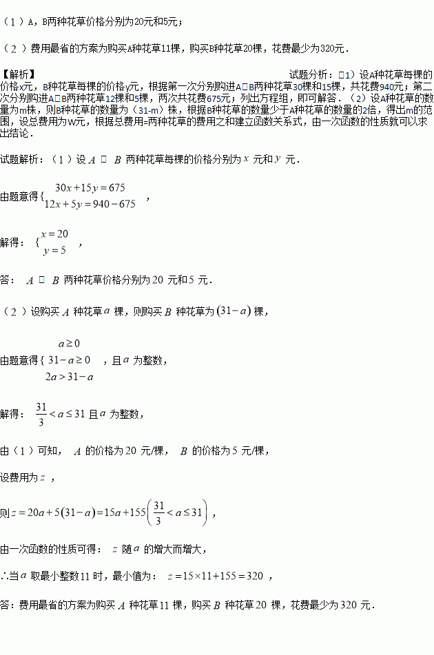 两种花草价格均分别相同).