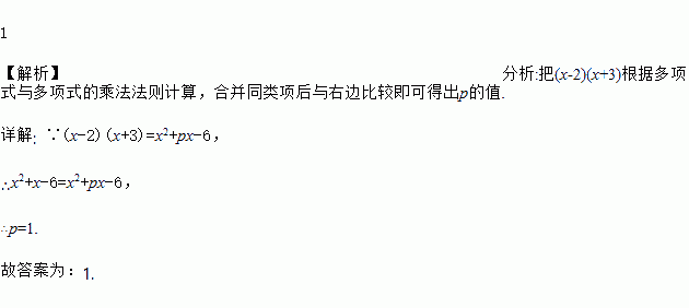 如果(x-2)(x+3)=x2+px-6,则p=_____.