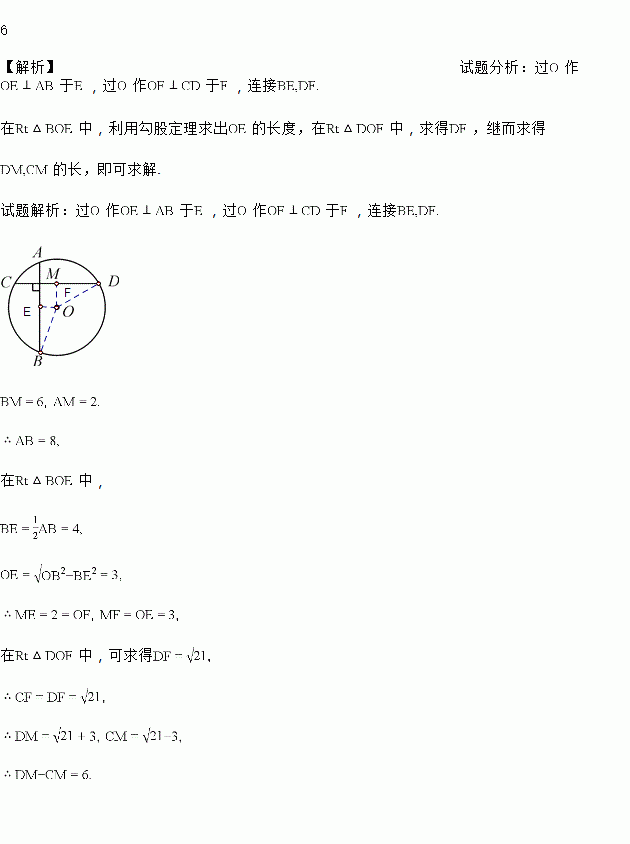在⊙O中,弦AB⊥弦CD于M,已知⊙O半径为5,BM=6,AM=2.求DM-CM的大小.